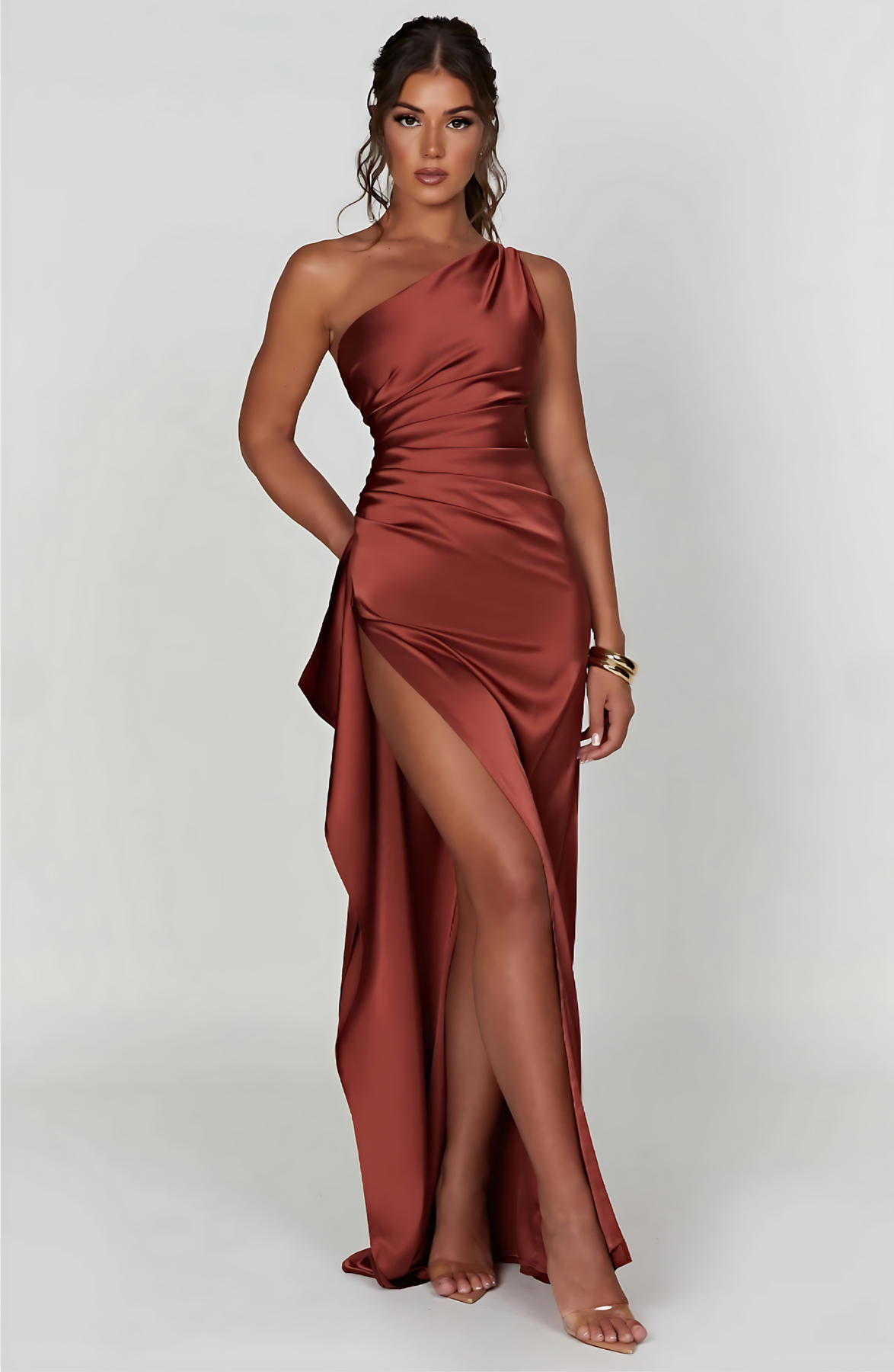 Turn heads in the Solana Satin Elegance Maxi Dress, a timeless strapless gown designed to flatter every curve. With its sleek satin finish and fluid drape, this dress exudes sophistication and luxury. The clean, structured neckline paired with gentle ruching at the waist creates a sculpted silhouette, while the floor-length hem adds an air of grace and glamour.